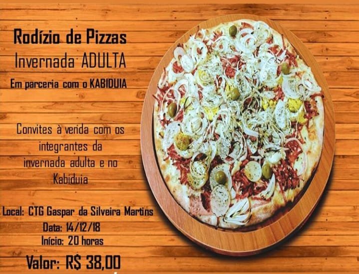 Para o retorno da invernada adulta do velho Gaspar, o grupo promoverá no dia 14 de dezembro (sexta-feira) um rodízio de pizzas. Convites já estão sendo comercializados pelo valor de R$38 pelos integrantes e também no restaurante Kabiduia, que será o responsável pela produção do rodízio.