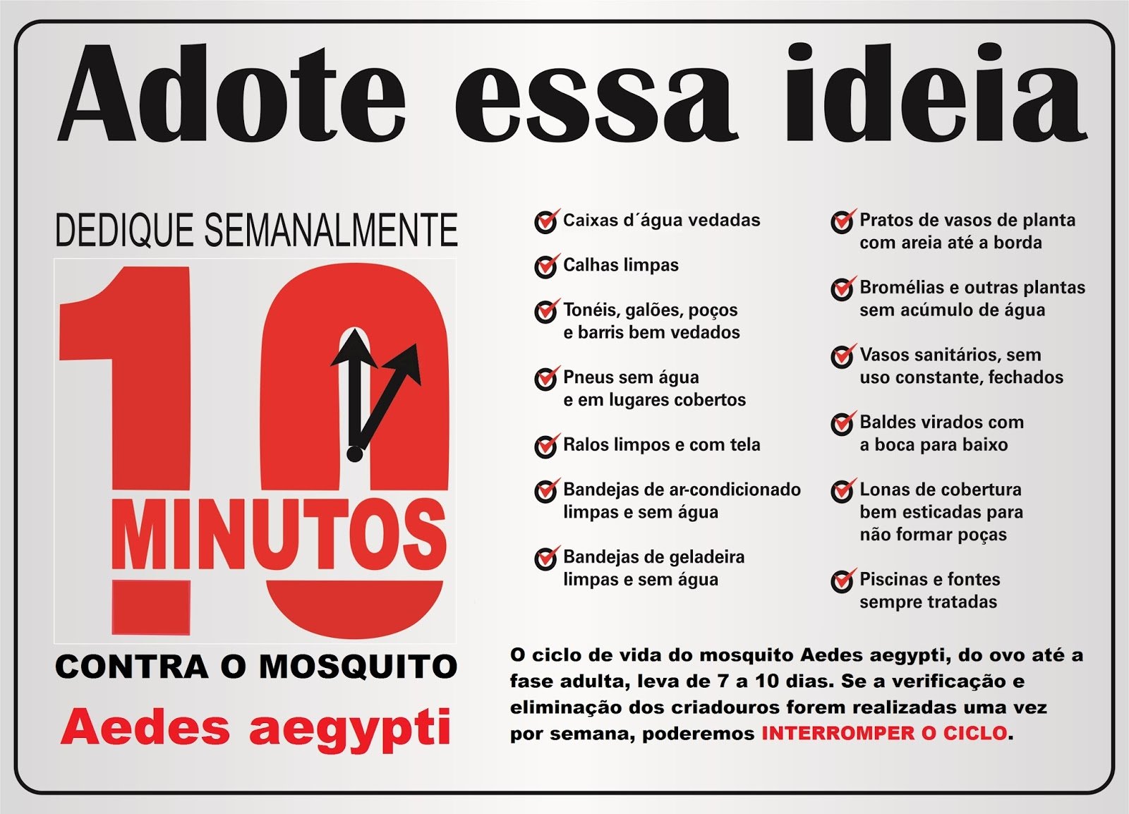 Portanto, a Vigilância Epidemiológica juntamente com a Secretaria Municipal de Saúde e Poder Executivo e demais entidades, estarão realizando um Mutirão de Limpeza na cidade. Este mutirão está previsto para os dias 15 e 22 de dezembro, com detalhes a serem acertados em reunião prévia com a equipe que compõe o Comitê de Controle do Vetor Aedes aegypti.