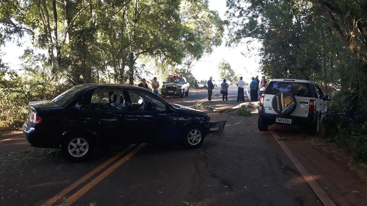 Uma árvore caiu na pista e fez com que um Chevrolet Classic batesse nela e envolvesse mais um veículo na colisão.