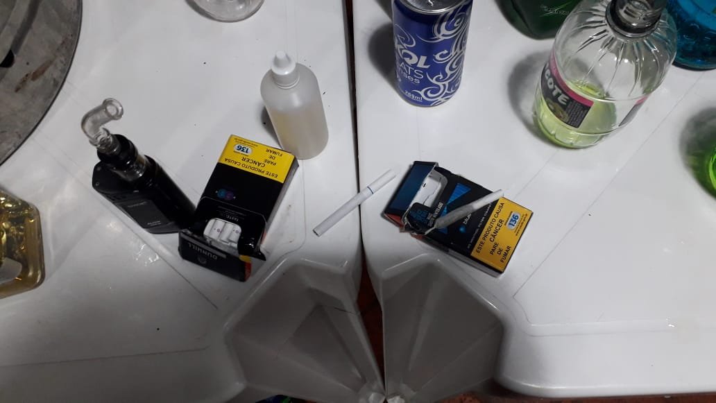 No local foi constatado a ingestão de bebida alcoólica por menores, sendo apreendido grande quantidade de recipientes de bebidas destiladas já consumidas, além de três barris de Chopp de trinta litros cada, sendo que dois estavam vazios. Foram apreendias duas carteiras de cigarro, uma porção de maconha, além de um cigarro eletrônico tipo vaporizador com um frasco contendo aroma.