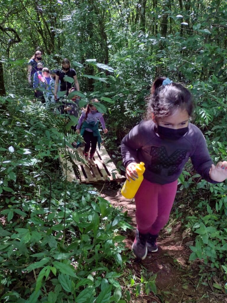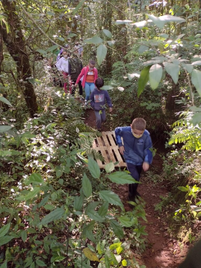 Após a participação na trilha, os alunos foram recebidos na Capela Santo Antônio da Linha 17 para um piquenique, no qual foi incentivado a degustação de diferentes tipos de frutas.