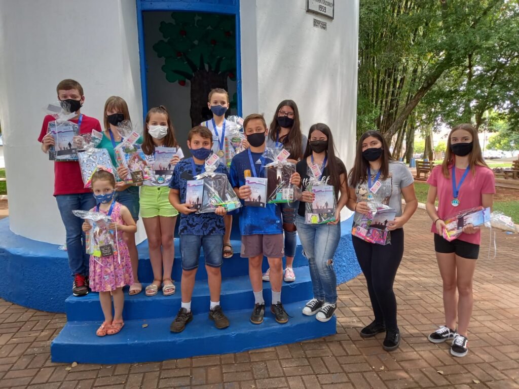 Além das medalhas, os alunos receberam uma lembrancinha e ainda o livreto com todas as redações vencedoras do concurso de redação.